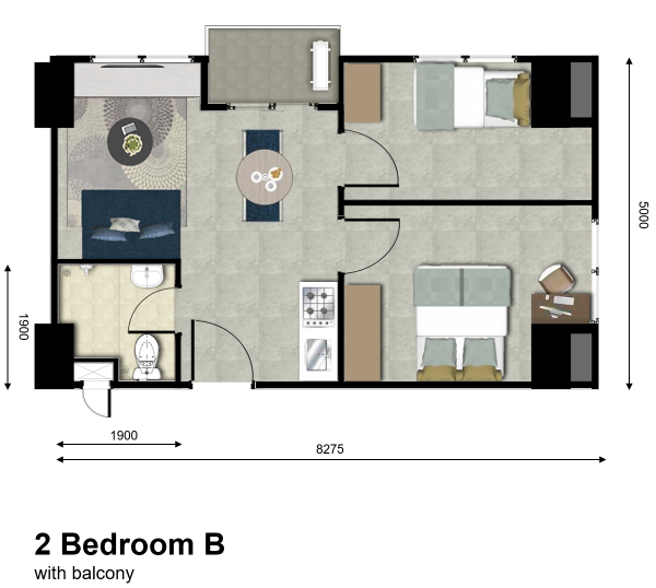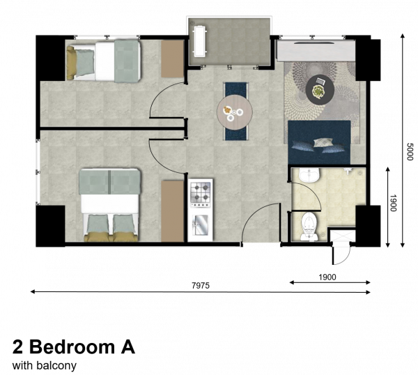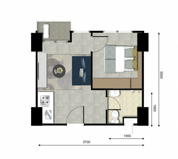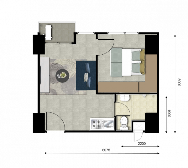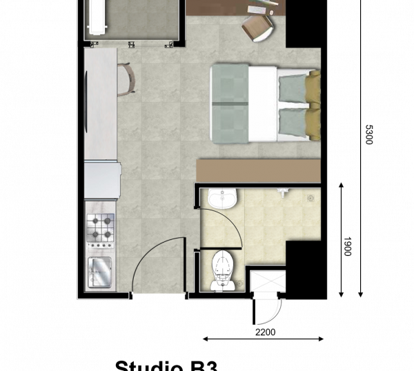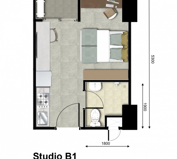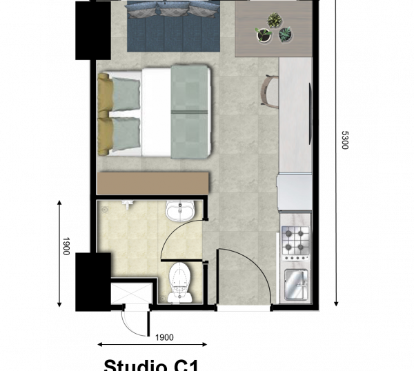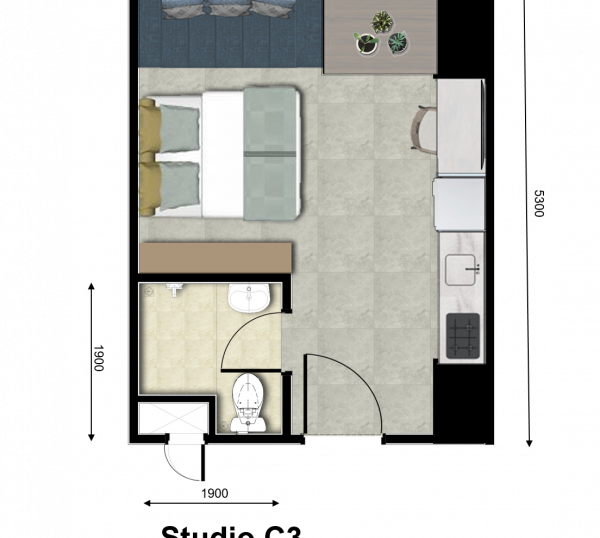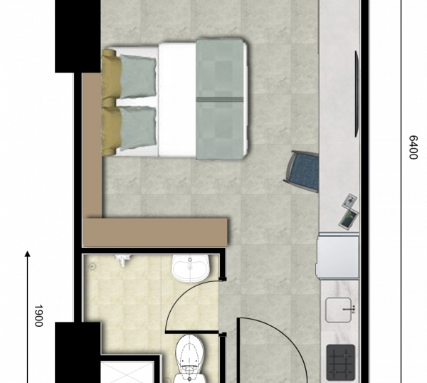 | Floor | : | Homogenous tile 60 x 60 cm |